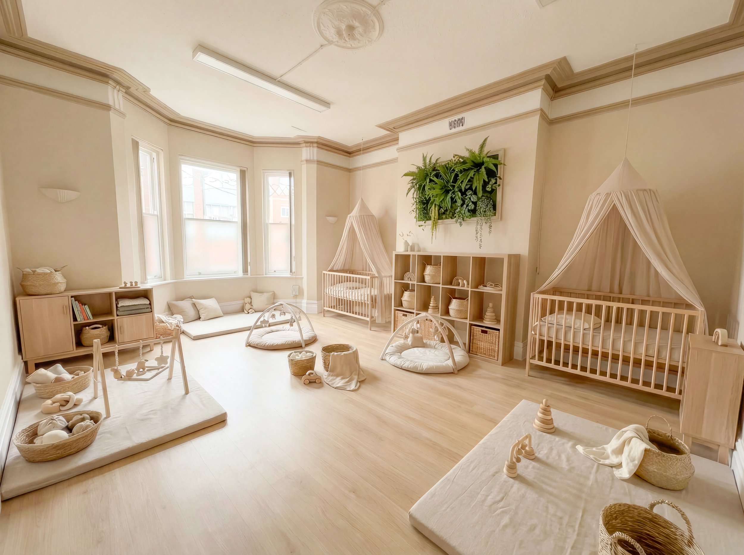 Our nursery is based on the principles of attachment parenting. Attachment parenting is a form of parenting which focuses on developing strong bonds between parent and child. It encourages parents to spend quality time with their children, and to provide emotional support and guidance.